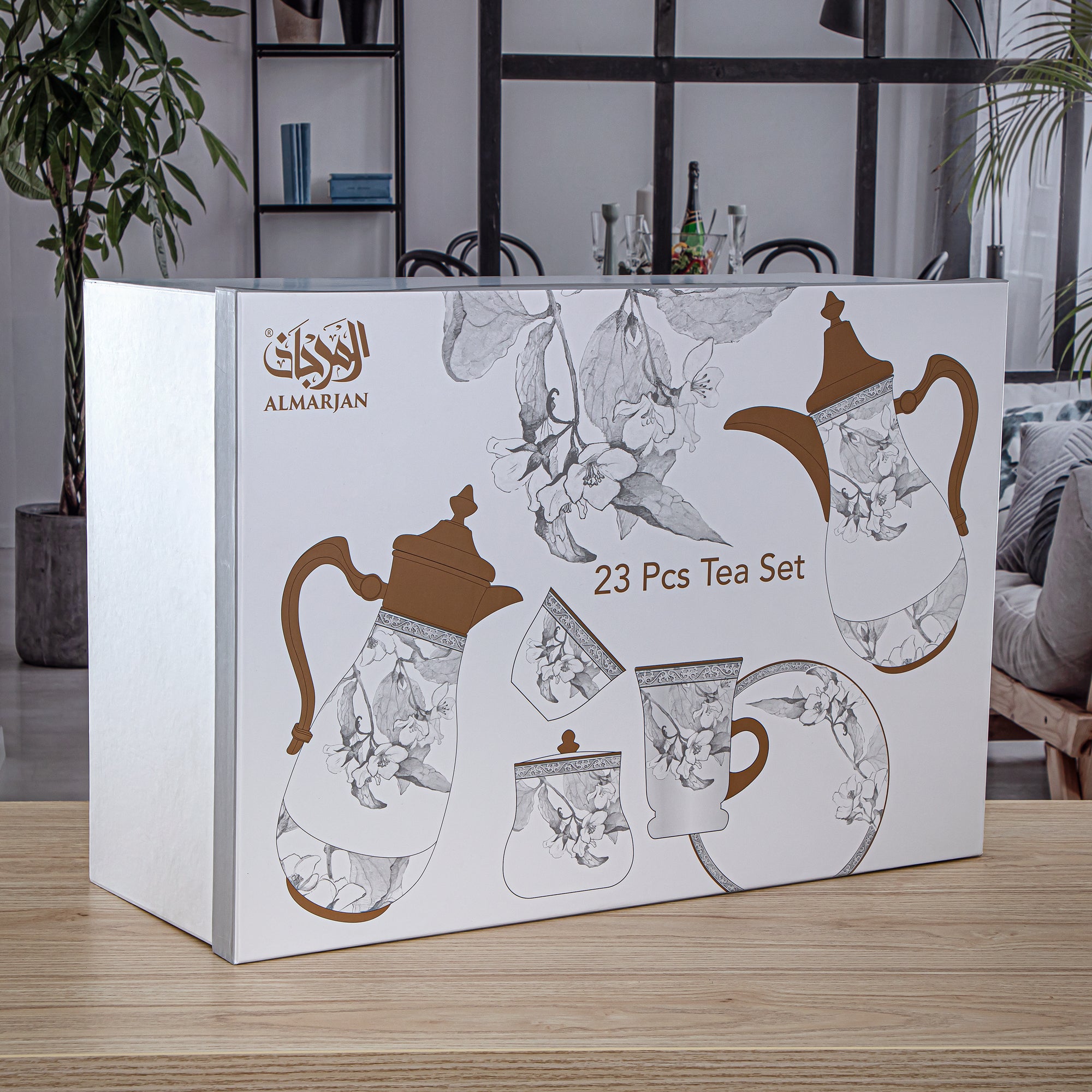 • يتضمن الطقم: 2 × ترامس، 6 × فناجين شاي، 6 × صحون، 6 × فناجين قهوة، 1+1 × وعاء سكر، 1 صينية ميلامين