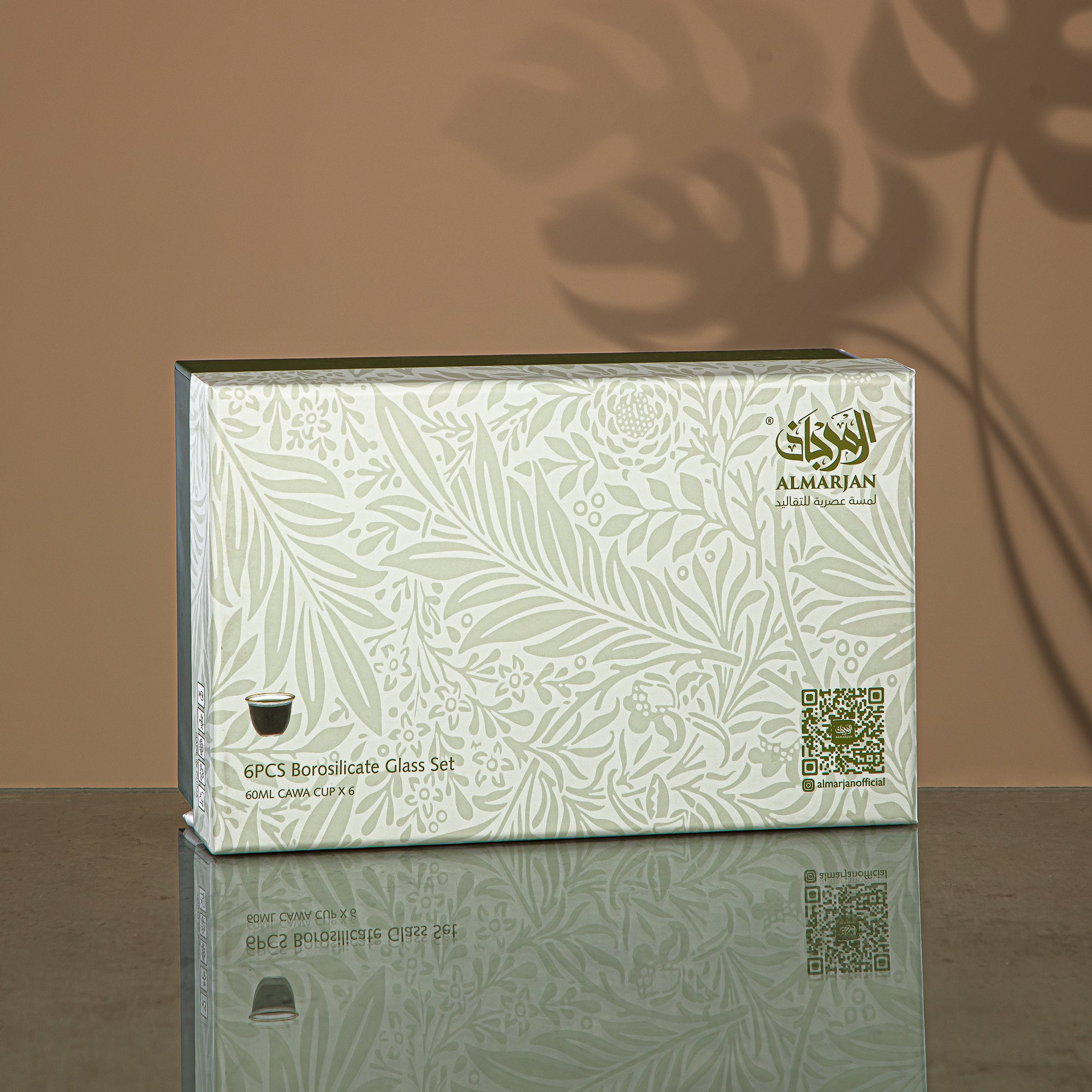 اكتشف المزيج المثالي من التقليد والأناقة مع مجموعة القهوة العربية المارجان. مصنوعة من زجاج البورسليكات الفاخر، تم تصميم هذه المجموعة المكونة من 6 قطع لتعزيز لحظات قهوتك العربية.