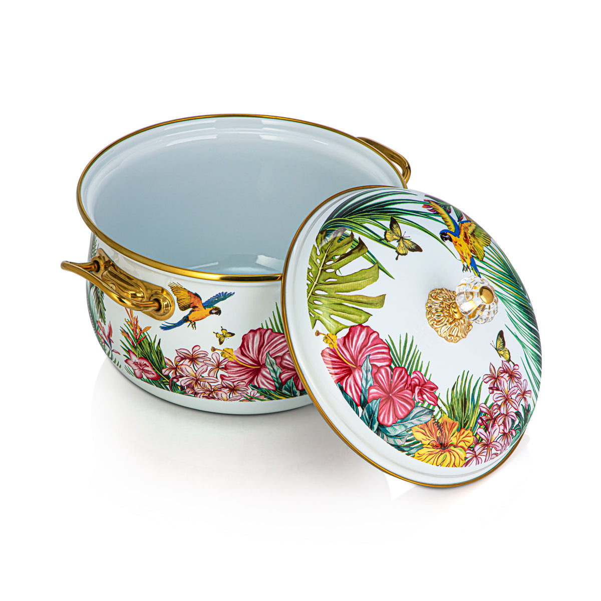 تعتبر أواني الطبخ من تشكيلة تحفة رائعة لطهي جميع أنواع الأطعمة واليخنات. وهي مناسبة لوضعها مباشرة على مواقد الغاز والكهرباء. يخلق تصميمها المذهل على مادة المينا مزيجًا جيدًا من الأسلوب والتقاليد ، مما يجعلها مثالية لأي مناسبة.