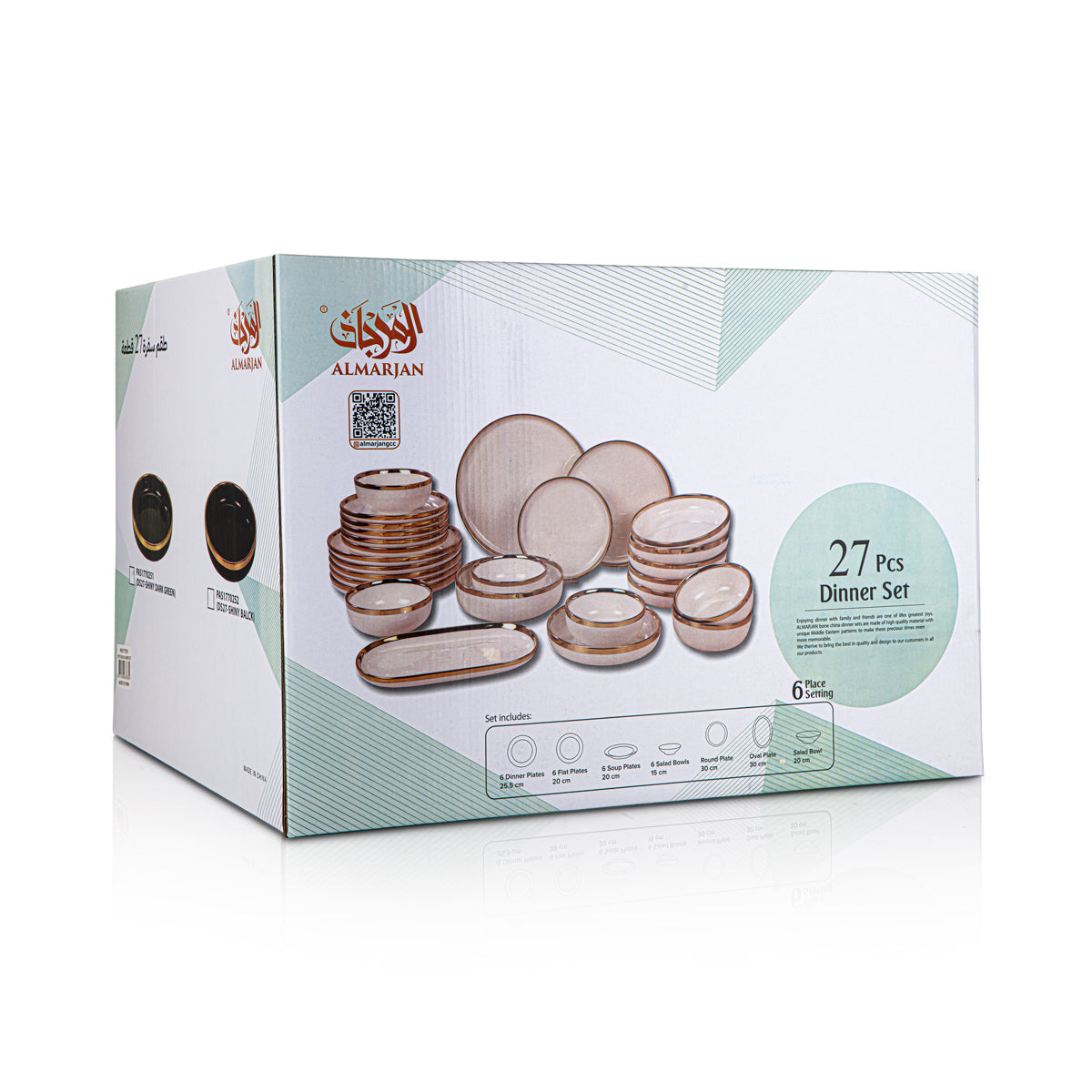 المرجان طقم عشاء سيراميك دائري 27 قطعة اخضر فاتح - DS27.4