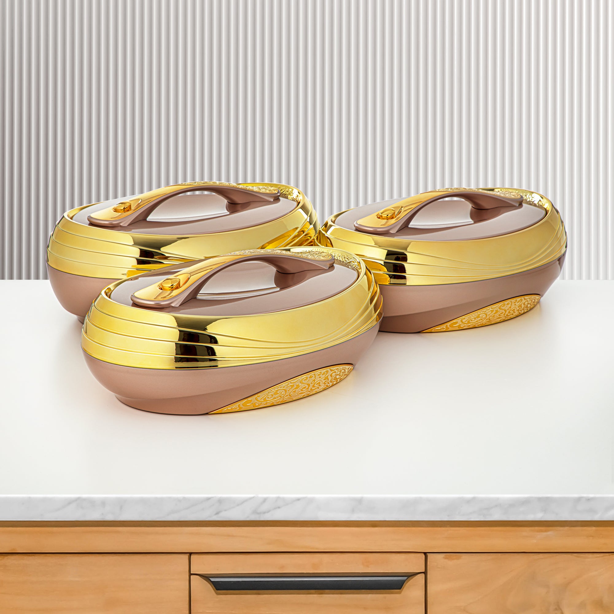 أضف لمسة أنيقة لاستضافتك مع طقم حرارات البلاستيكي 3 قطع. تشتمل المجموعة على 4، 5، و6 لتر من الأواني الساخنة، مما يحافظ على طعامك ساخنًا وطازجًا لساعات. مثالية للتجمعات والمناسبات الخاصة والاحتفال برمضان والعيد مع العائلة والأصدقاء.