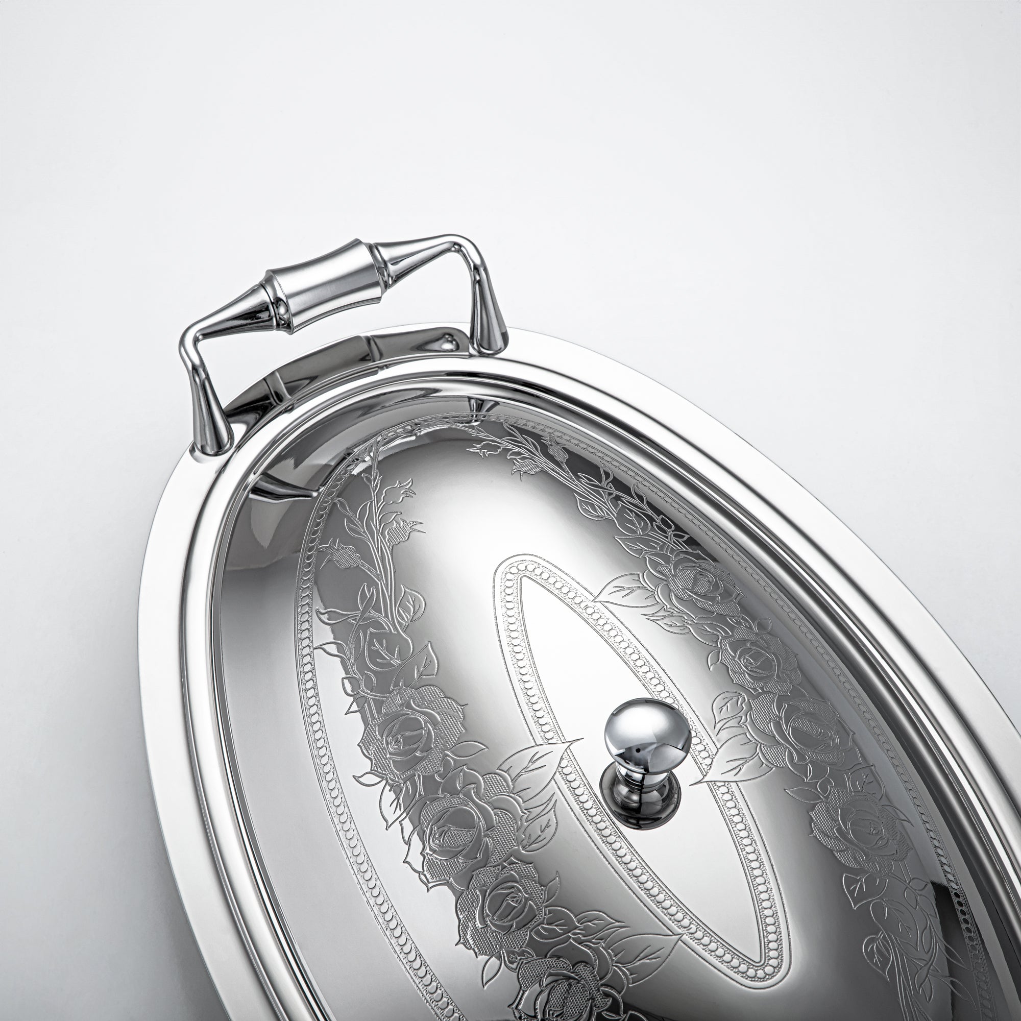 صينية تقديم بيضاوية ستانلس ستيل من مجموعة المرجان مقاس 40 سم مع غطاء فضي - STS2051272