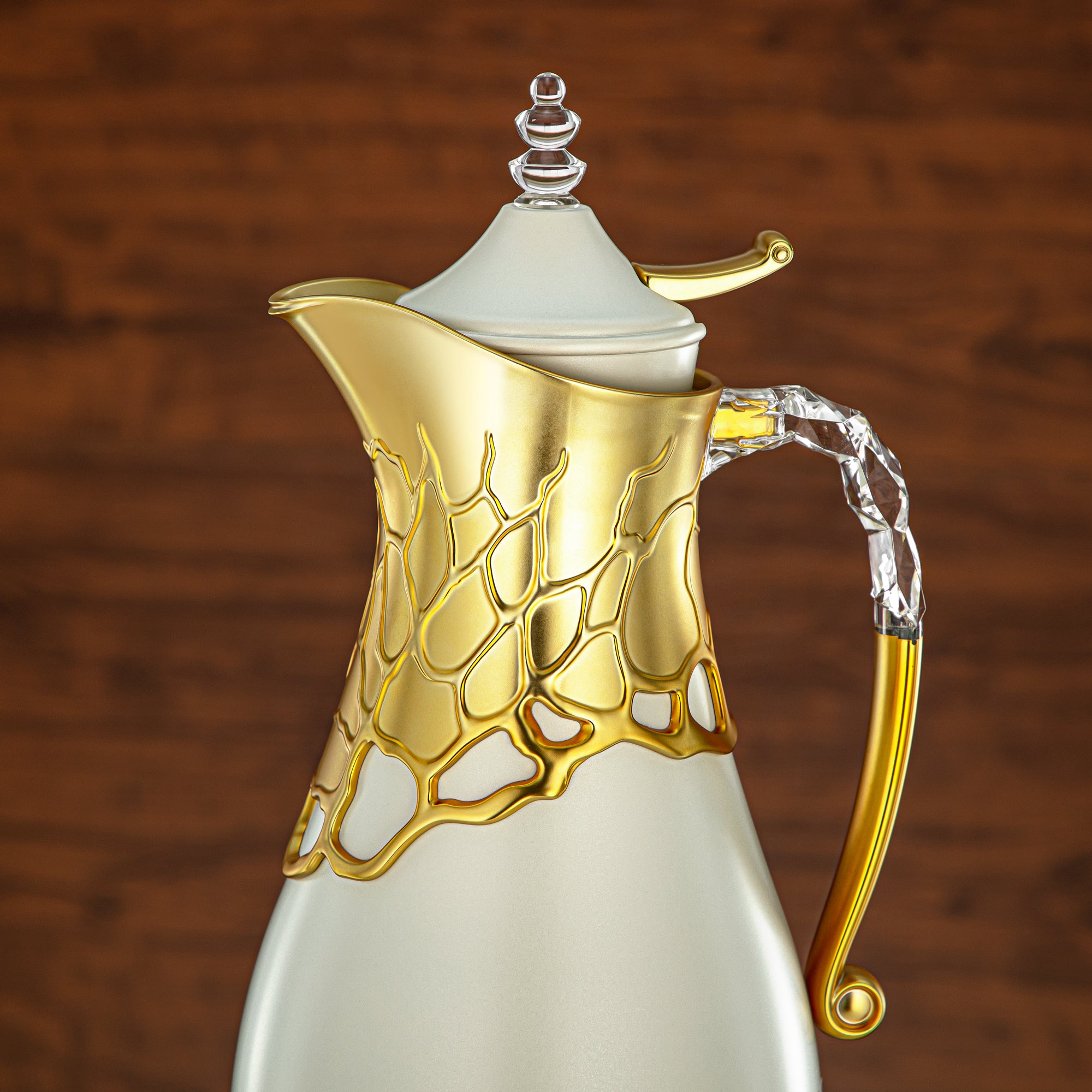 أضف لمسة راقية إلى لحظات الشاي والقهوة مع طقم ترامس المرجان باللون العاجي والذهبي غير اللامع الكلاسيكي. مصمم للاستخدام اليومي والتجمعات الخاصة، يجمع هذا الطقم المكون من ترامسين (0.7 لتر و1 لتر) بين العملية والأناقة الفنية.