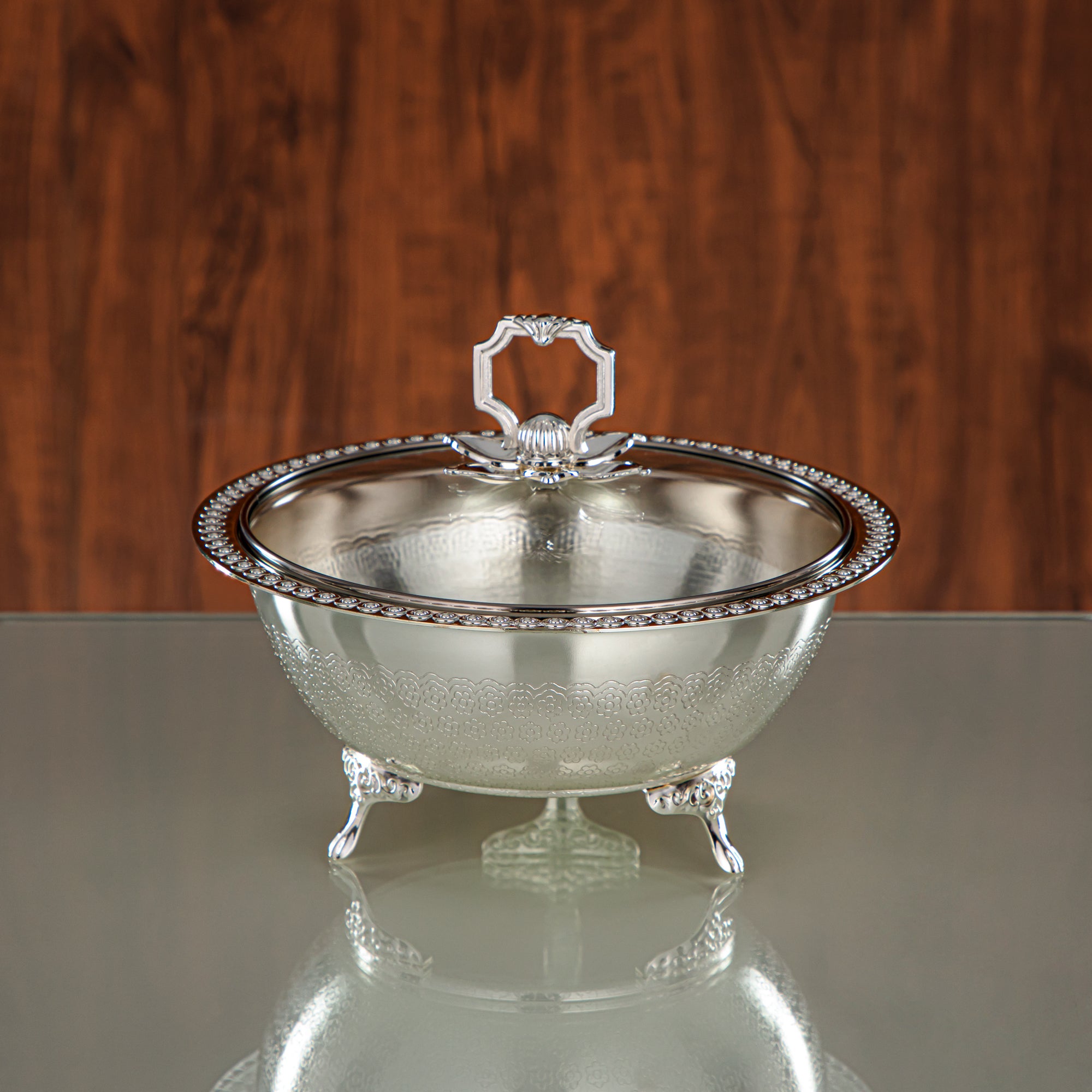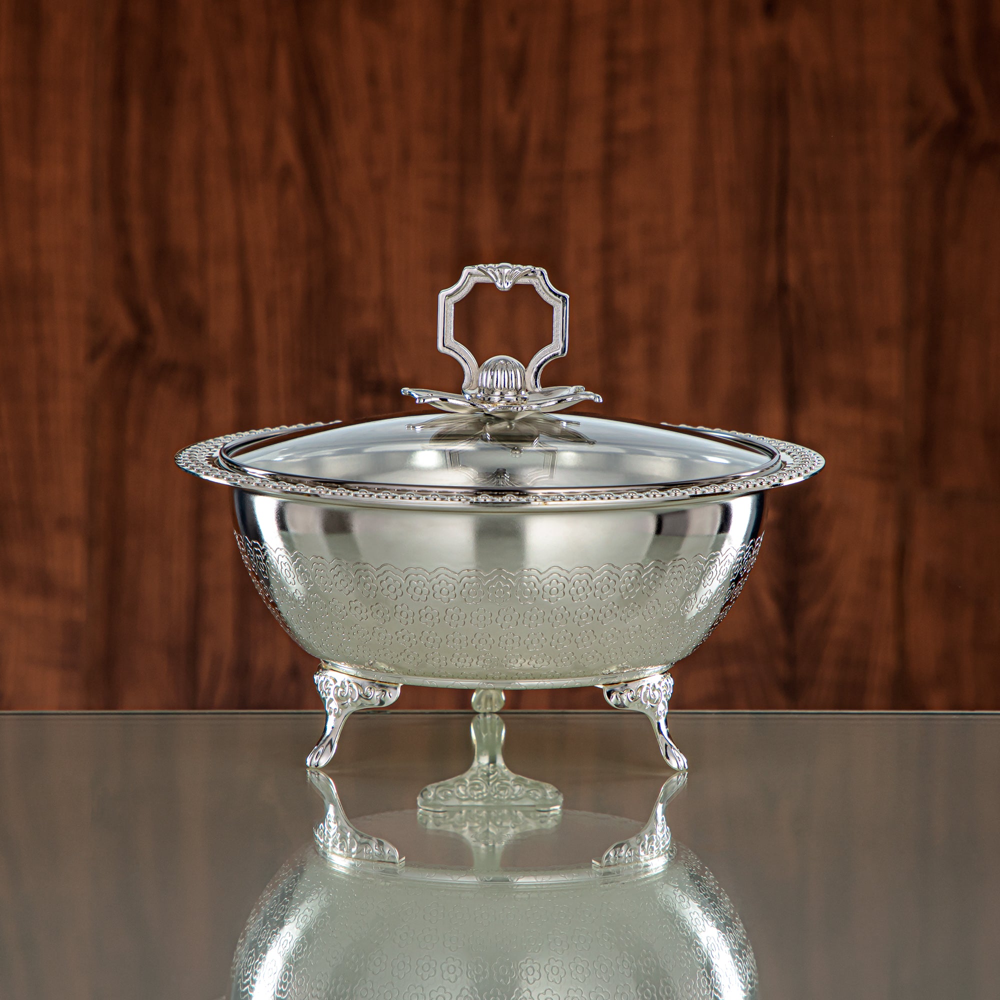 Almarjan Date Bowl 21CM (RBG4432M-S) - Silver Glass Cover | Ramadan & Eid