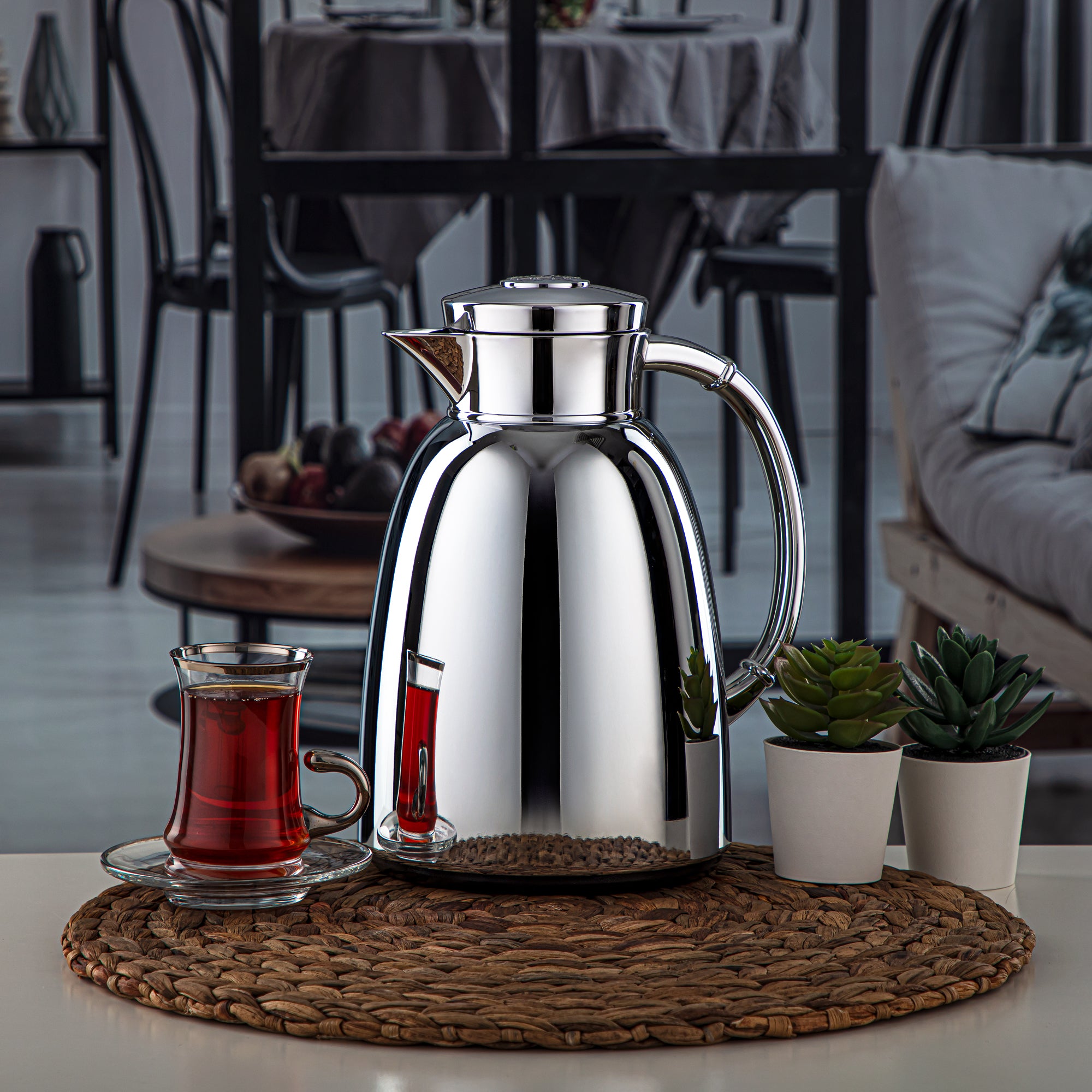Experience the pinnacle of luxury and convenience with the Almarjan 1 Liter Vacuum Flask Silver. This sophisticated flask boasts an insulated glass liner and push button cover to ensure your favorite hot or cold beverage remains perfectly preserved throughout the day. Savor the ultimate flavor and temperature of your beverage with this truly opulent flask.