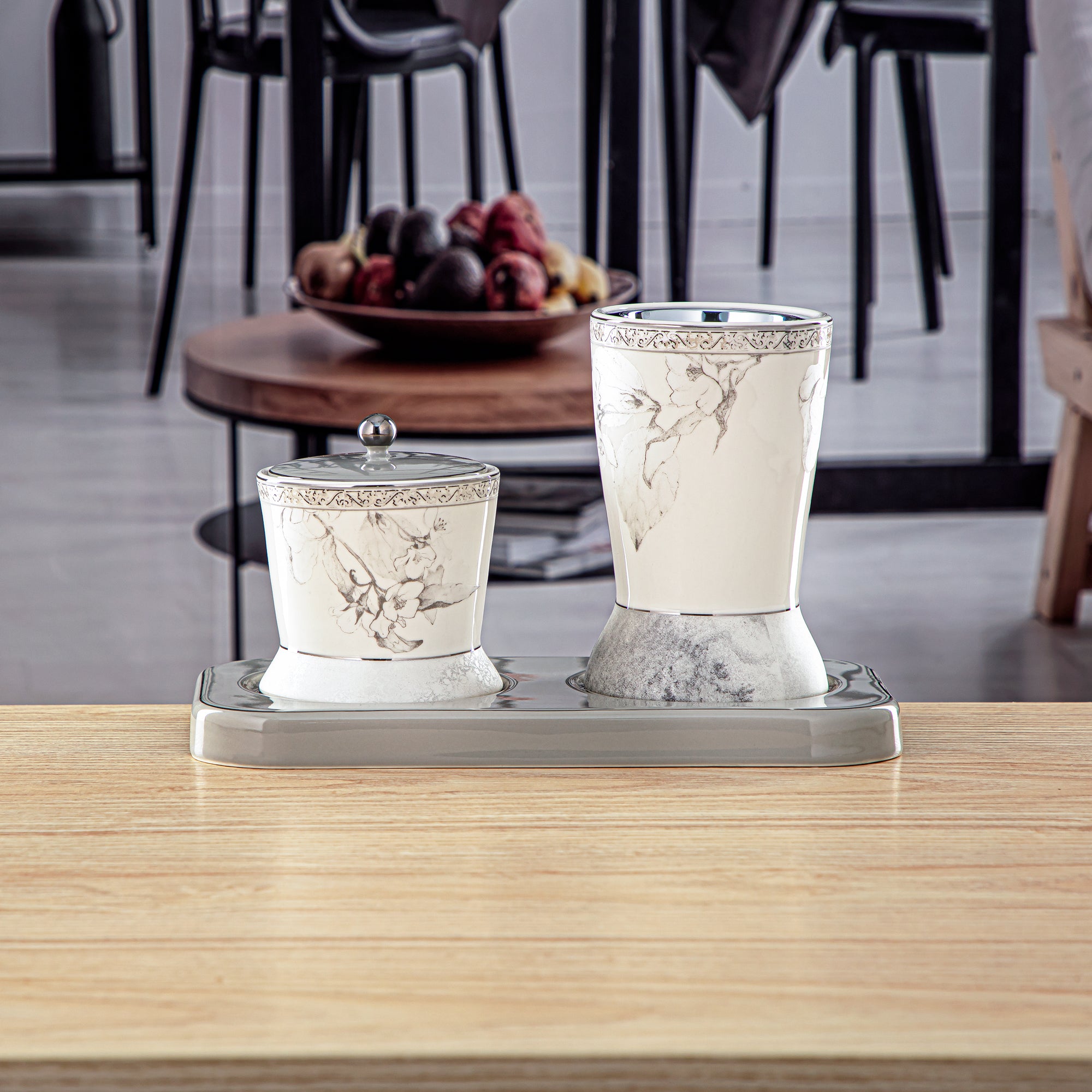 Almarjan 3 Pieces Fonon Collection Porcelain Incense Burner Set - 8588