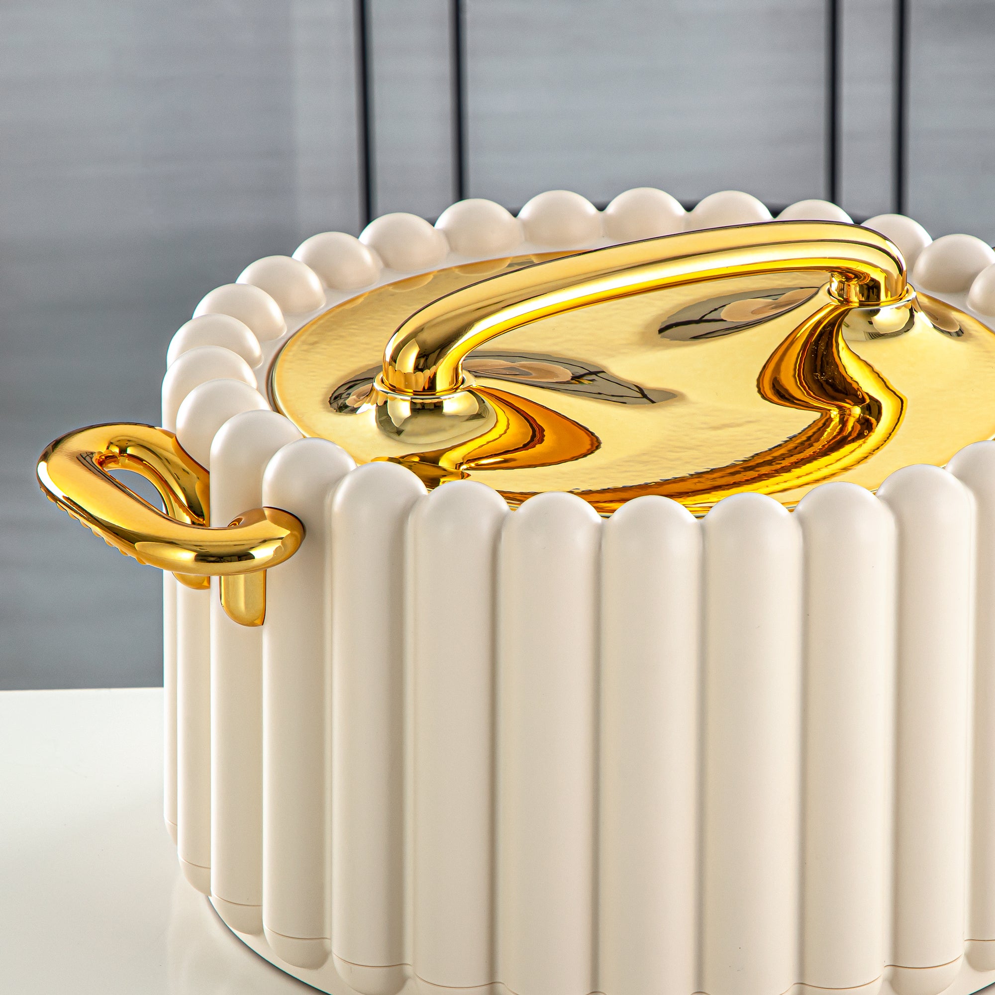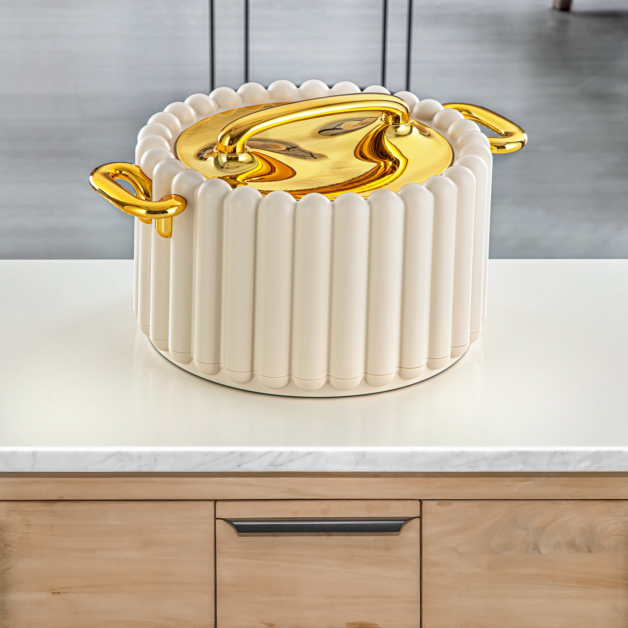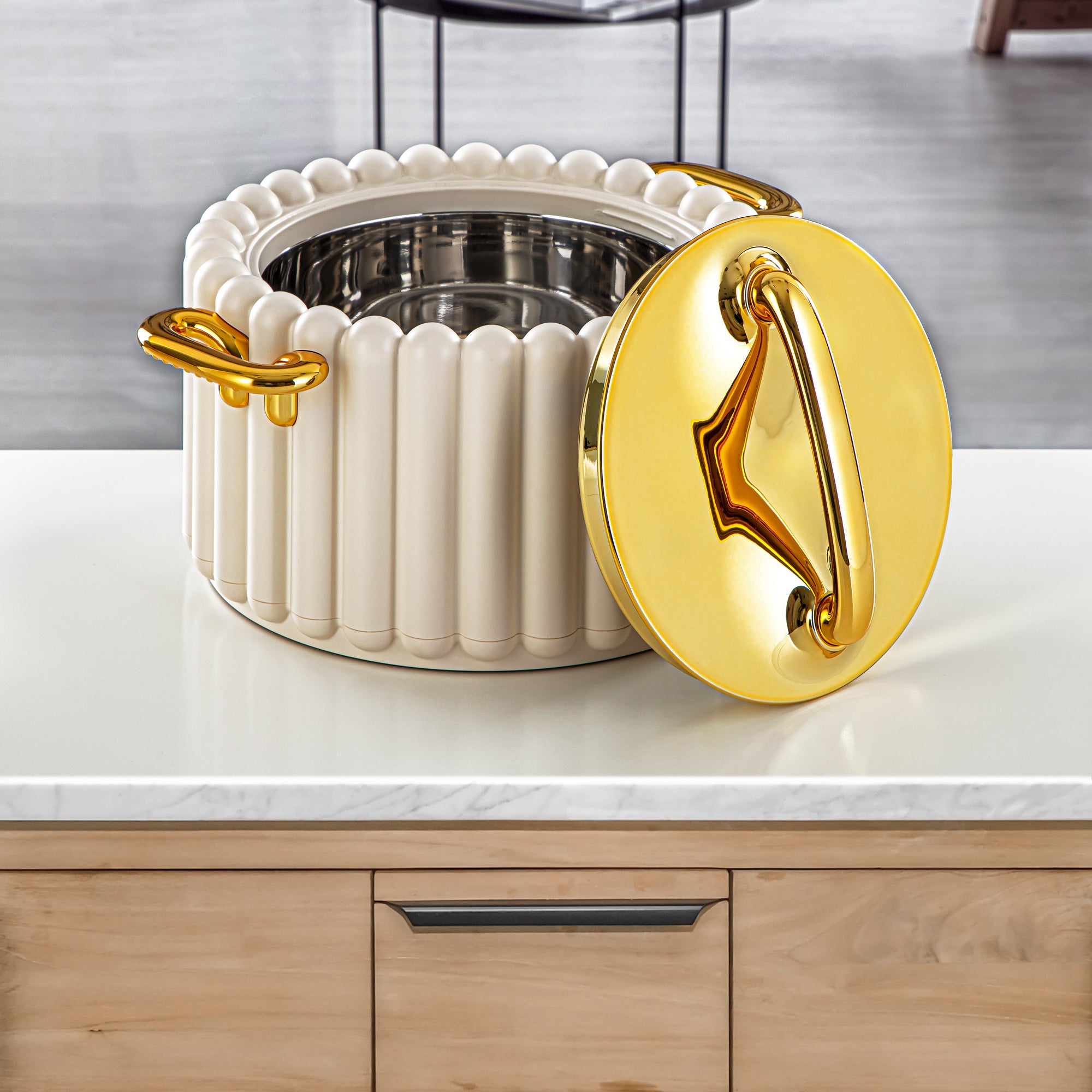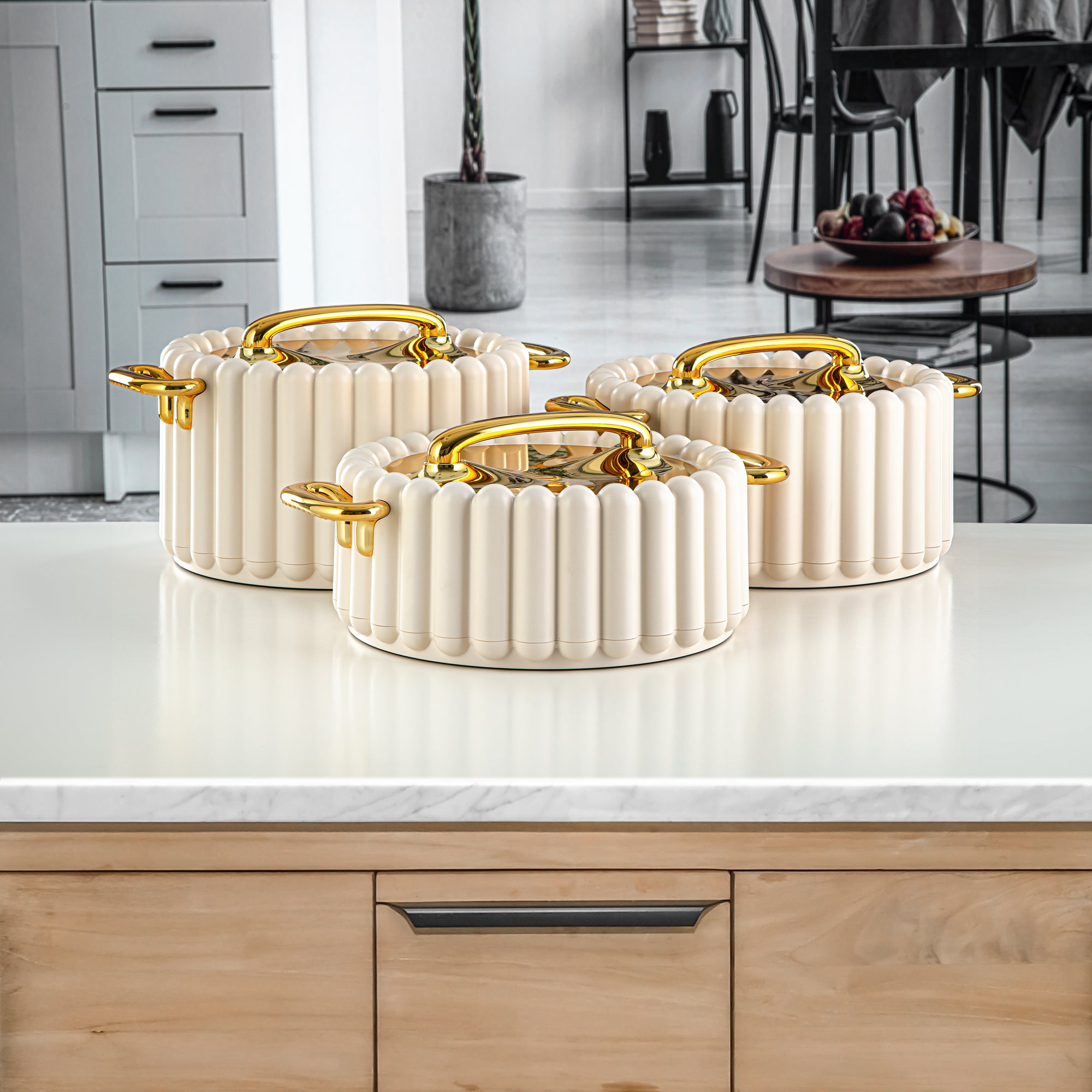 Almarjan 3 Pieces Plastic Hot Pot Set Ivory & Gold - EI-150/200/250 IV/G