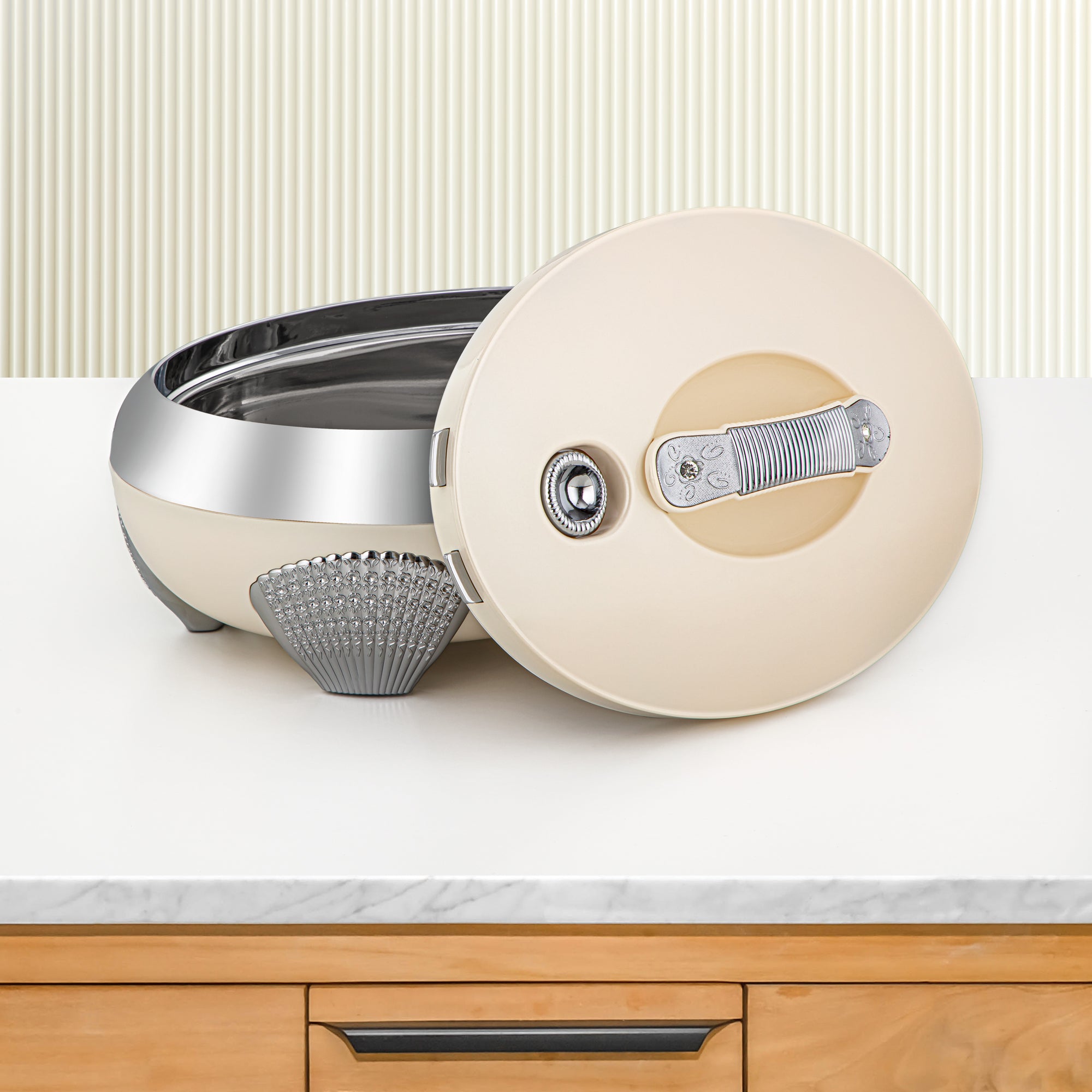 Almarjan 3 Pieces Plastic Hot Pot Set Pearl White & Silver - ZEA PW/C