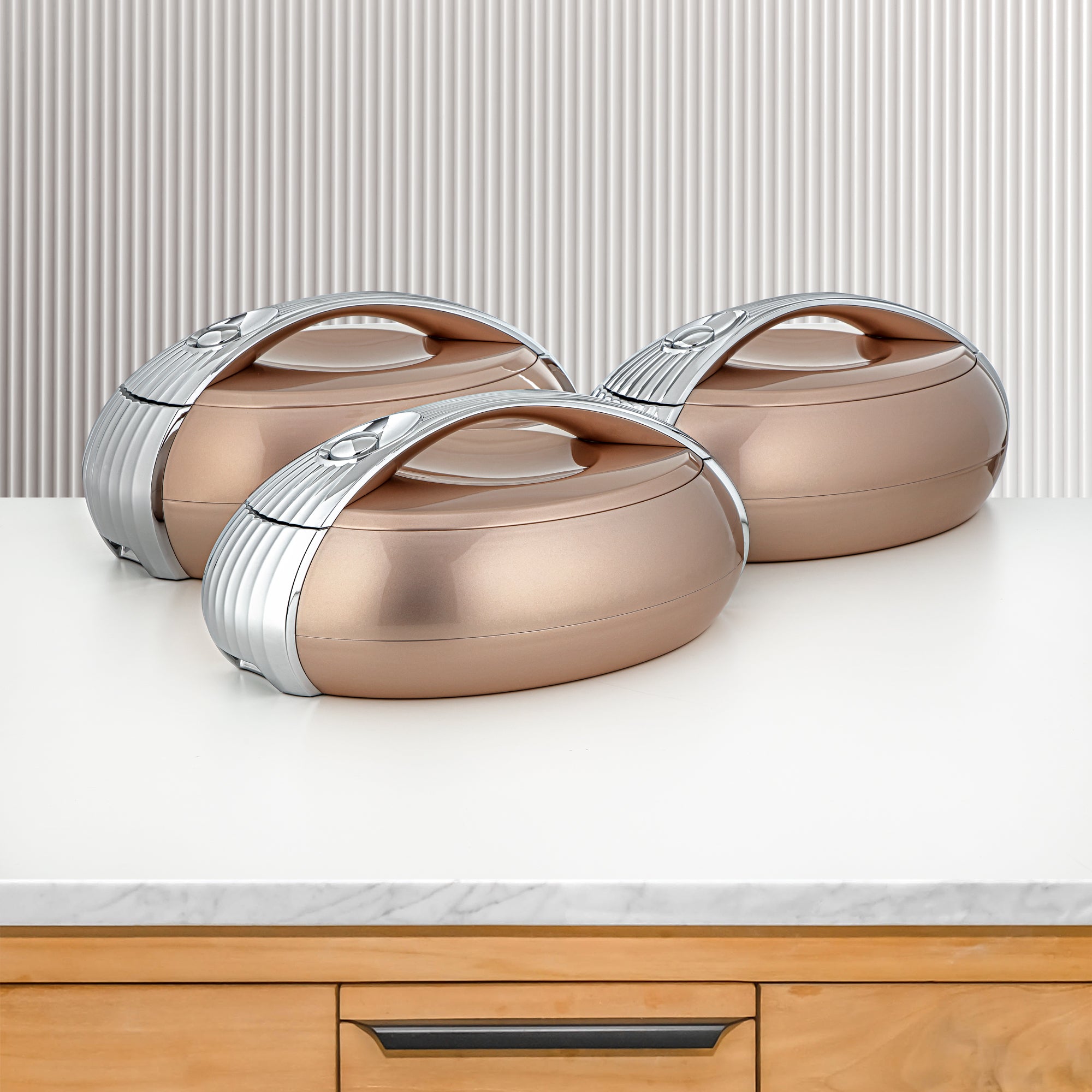 Add an elegant touch to your hosting with our Almarjan 3 Pieces Plastic Hot Pot Set. The set includes 4, 5, and 6-liter hot pots, keeping your food hot and fresh for hours. Perfect for gatherings, special occasions, and celebrating Ramadan and Eid with family and friends.