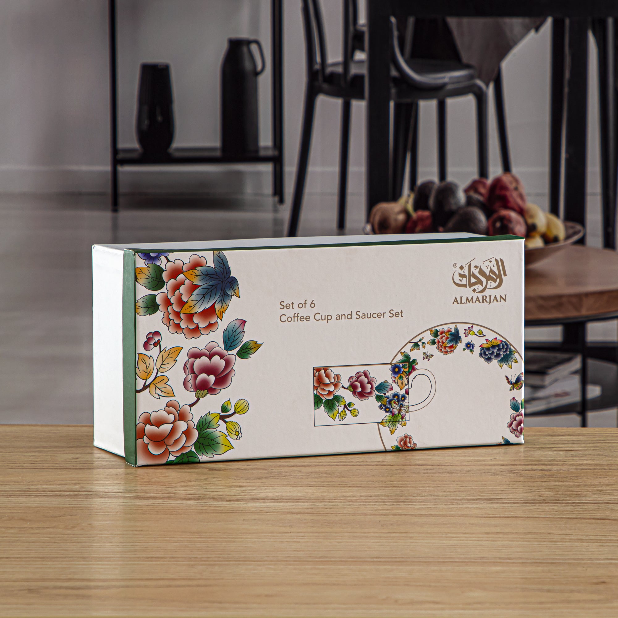 Almarjan 6 Pieces Fonon Collection Porcelain Turkish Coffee Cup & Saucer Set - 2070