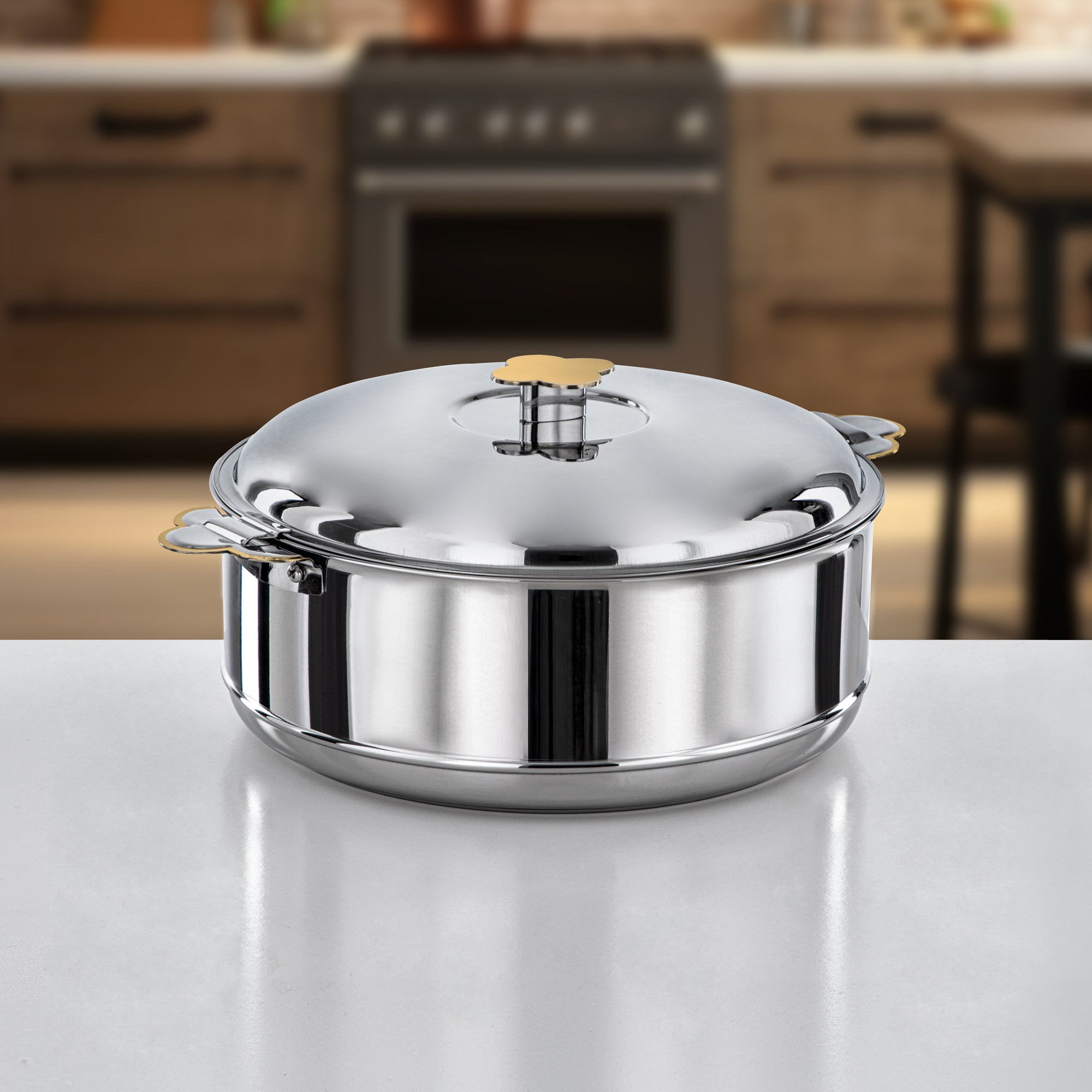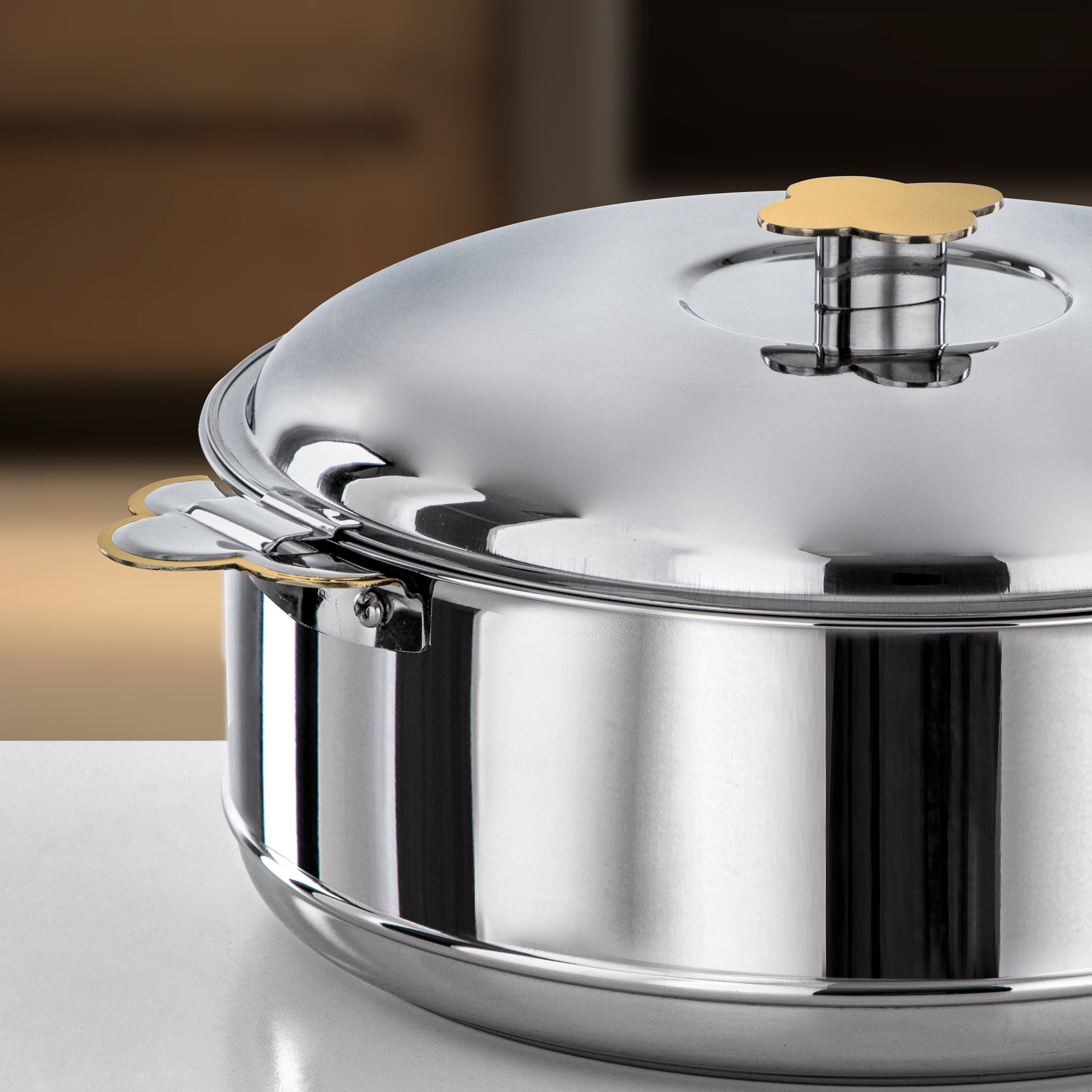 Almarjan Hot Pot Stainless Steel, Silver & Gold, 5000ML (H25PG1) - Vida Collection, Ramadan Gatherings