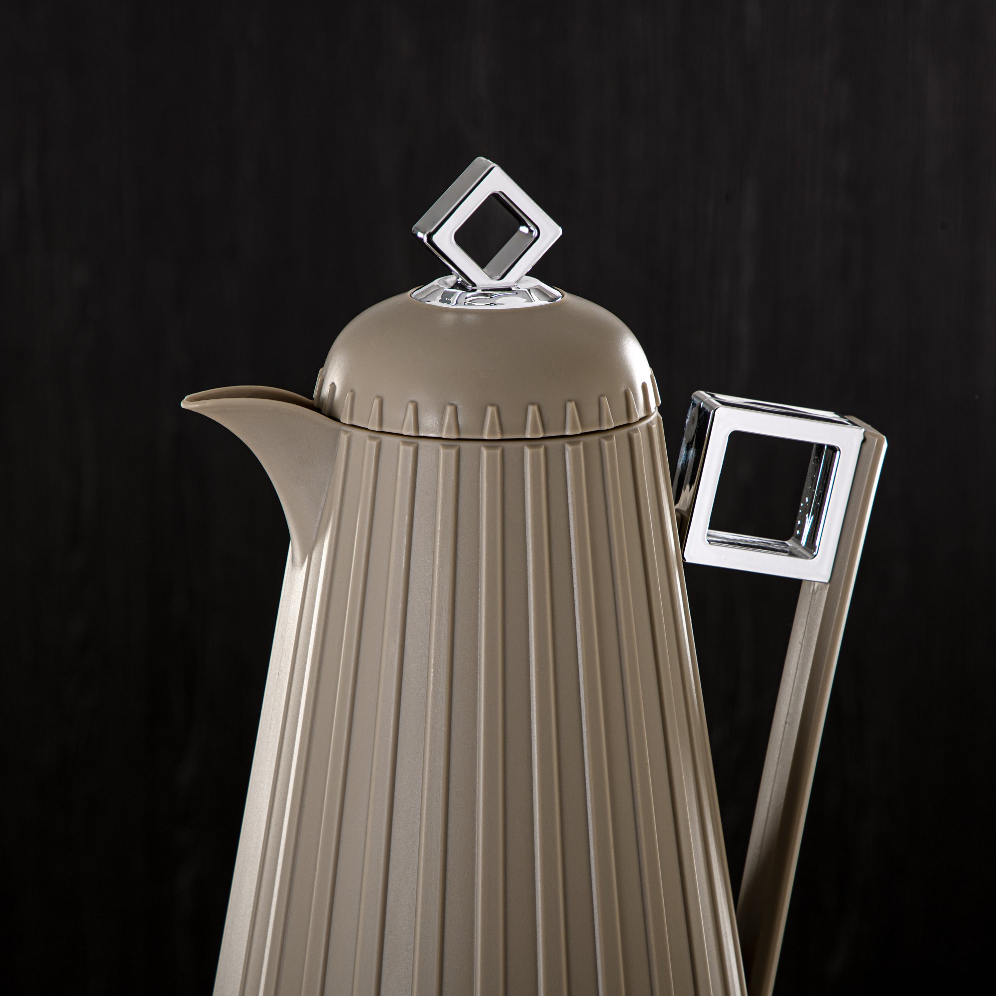 With a classic shape enhanced by modern accessories, the Almarjan Vacuum Flask Set stands out in both style and functionality. Its elegant soft grey and gold combination adds a touch of sophistication to any table setting.