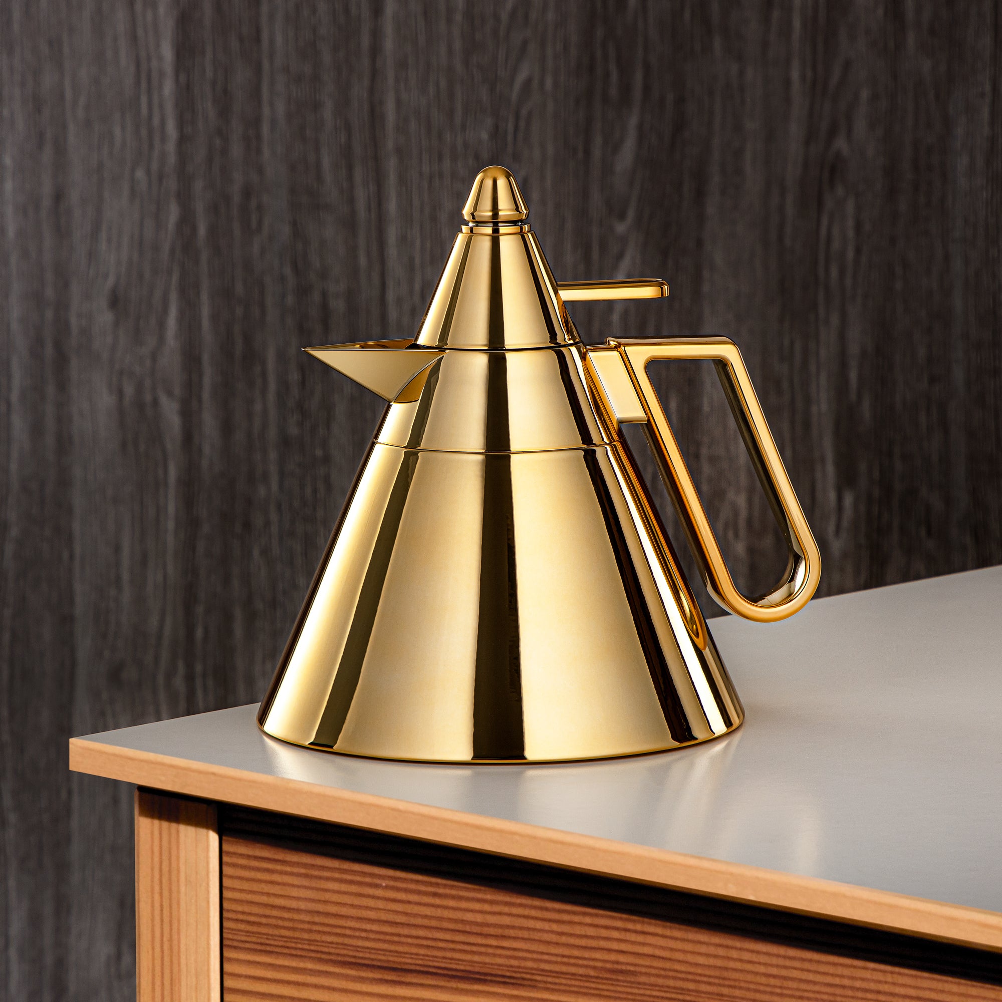 - Luxury Finishes – A high-polish gold exterior with a matching gold-plated neck, handle, spout, push button, and knob enhances its premium aesthetic.